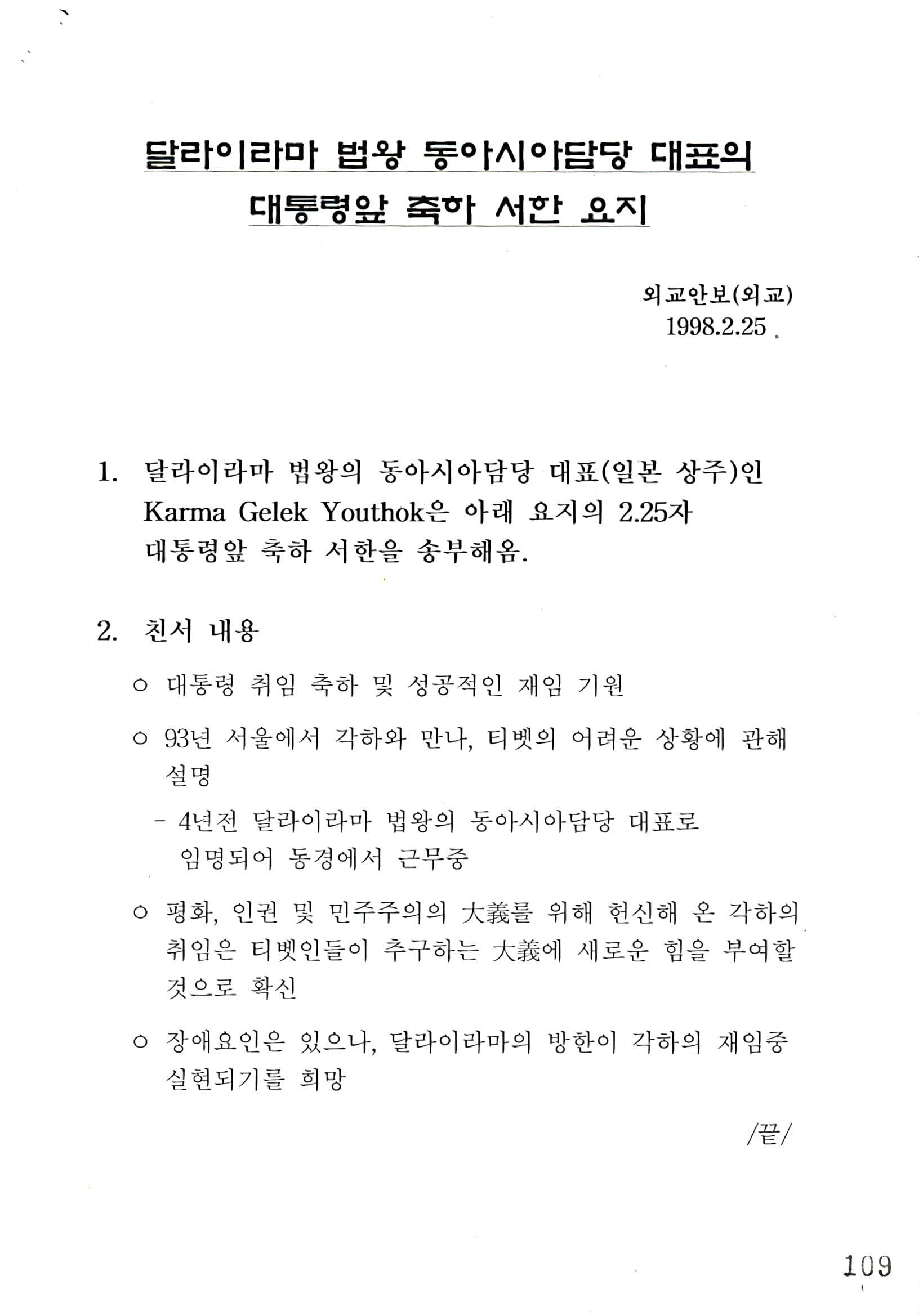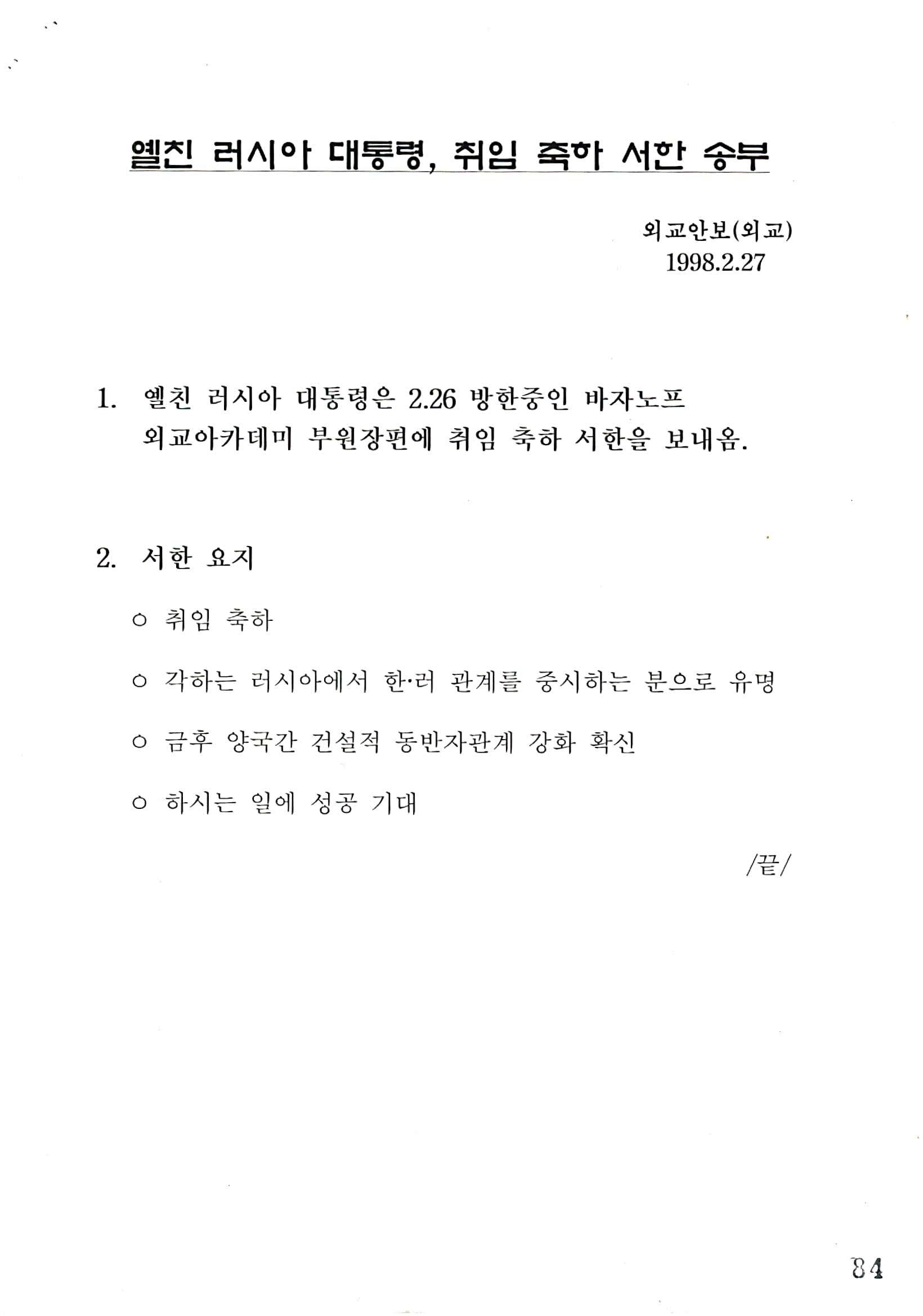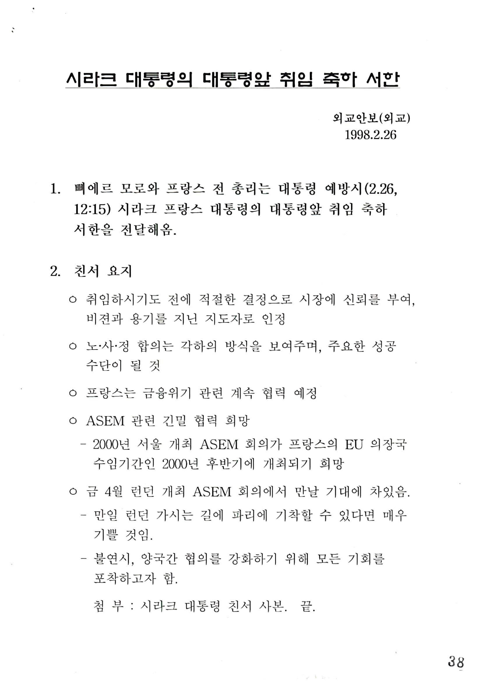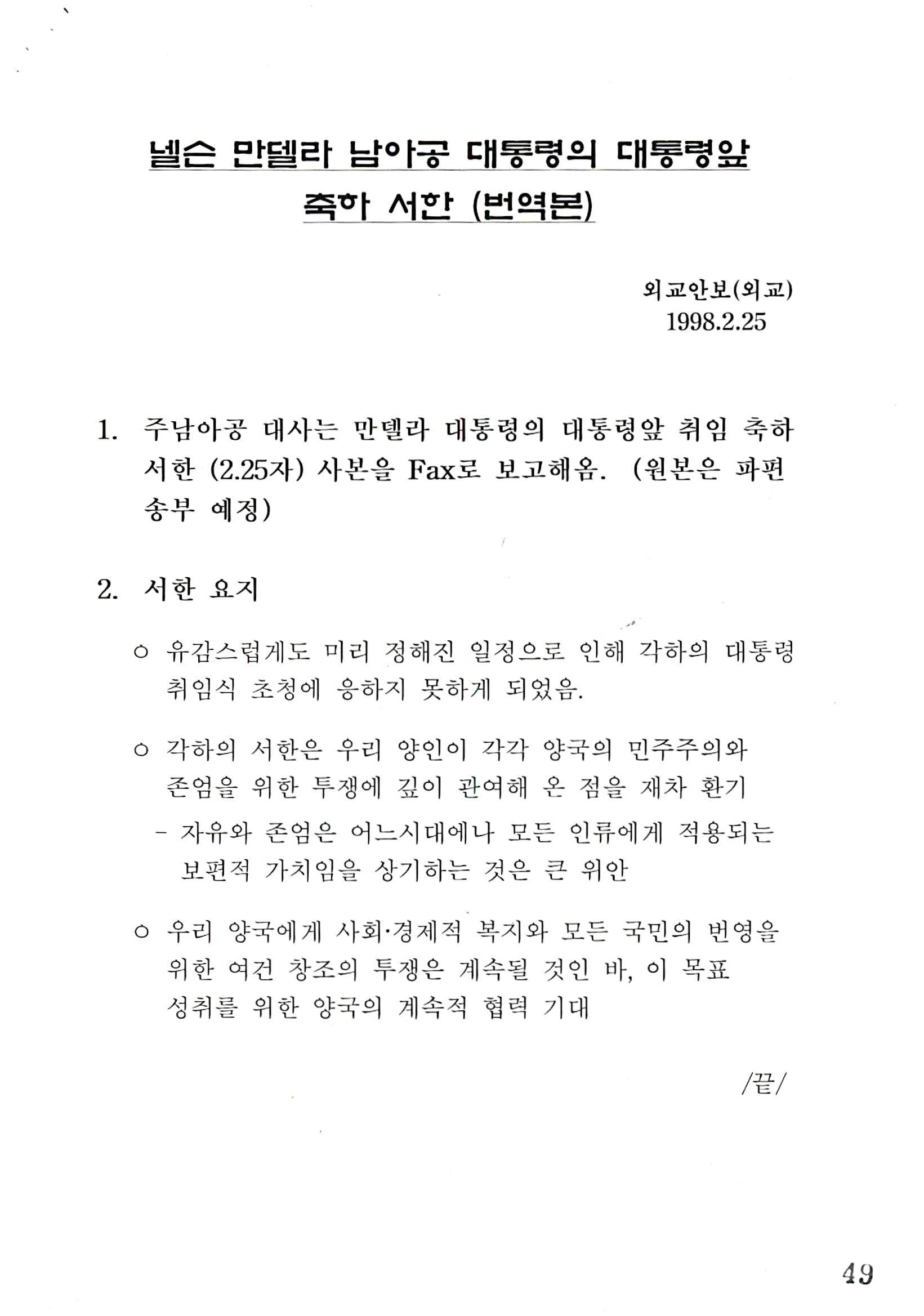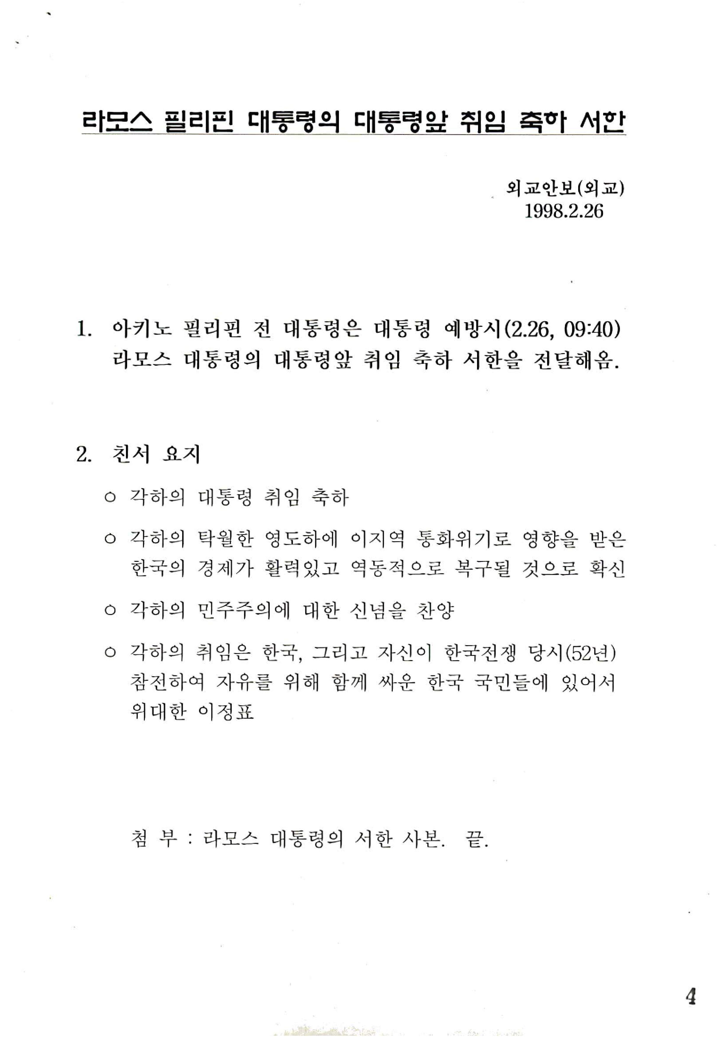 취임 축하 서한